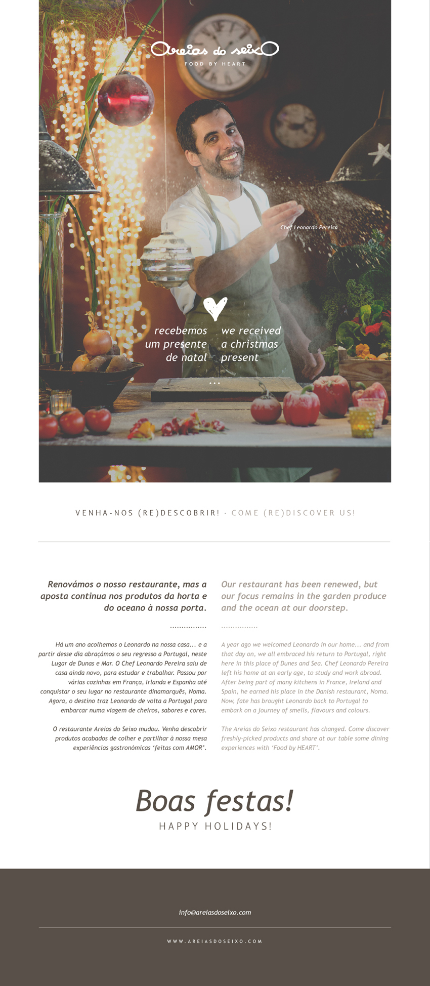 Em 2014, o postal de natal das Areias do Seixo ganhou uma carga natalícia ainda mais forte. Isto porque coincidiu com a chegada do chef Leonardo, vindo do conceituado restaurante dinamarquês Noma.