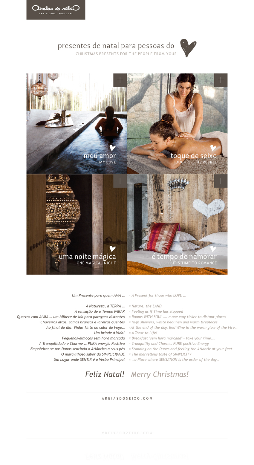 Acompanhada por uma introdução de pendor poético e uma descrição cuidada dos serviços, as imagens dão o mote ao céu na terra que as Areias do Seixo prometem.