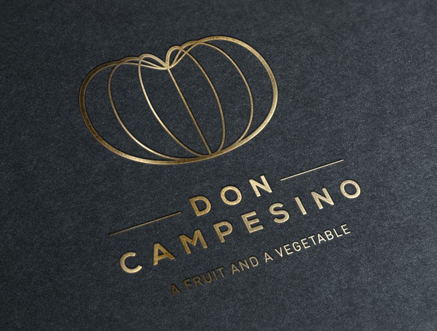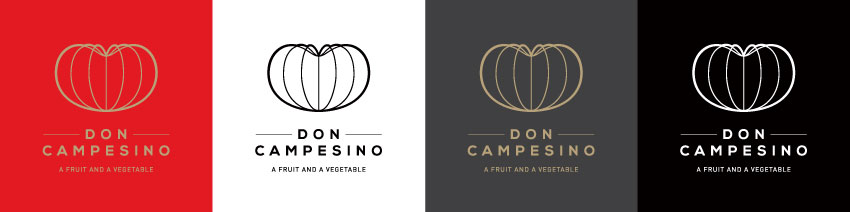 A Don Campesino é uma marca de tomate gourmet, logo mais dispendioso. O branding passa esse estatuto, através da cor dourada e da elegância do traço, mas sem esquecer a sua raiz agrícola - em português, o nome significaria algo como "Dom Camponês".