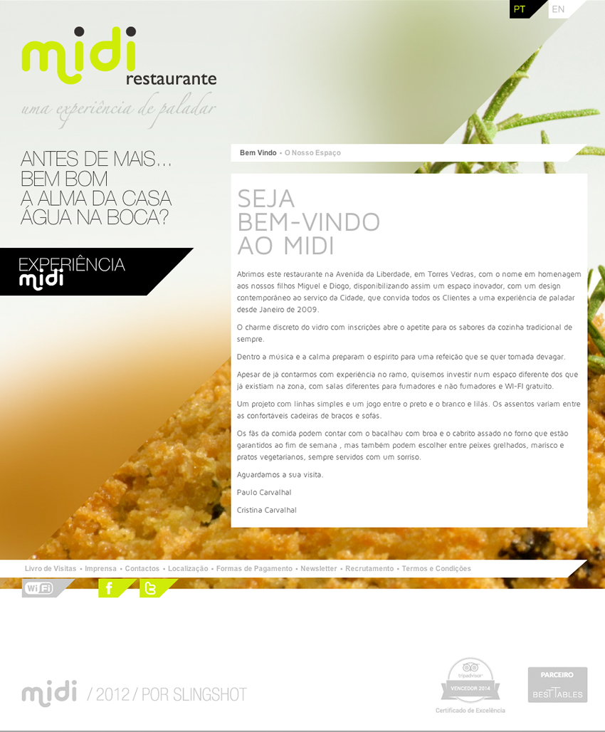 Tal como o restaurante se proclama "Uma experiência de paladar", este website procura fornecer aos utilizadores uma experiência apelativa para os sentidos, e com muita informação sobre o MIDI.