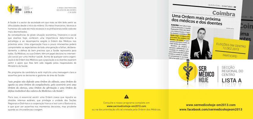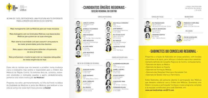 Quanto à campanha, criámos suportes de comunicação de fácil leitura e virados para o futuro. A inclusão de excertos de entrevistas apresentavam o cabeça de lista Dr. Carlos Cortes, mas sem o destacar demasiado em relação ao resto da equipa.