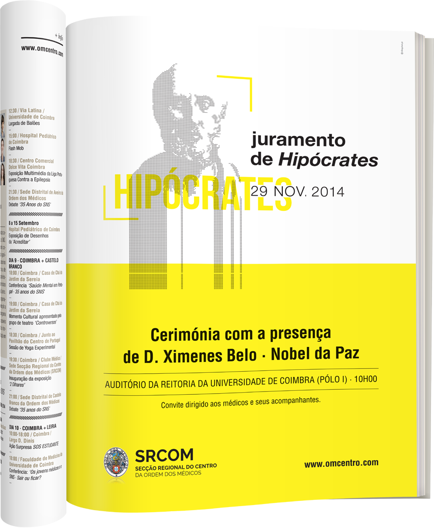 Logotipo do evento, que parte da personalização de uma imagem do próprio Hipócrates. Oferecemos a este símbolo ancestral um manto de modernidade, sem descurar a dignidade que é devida a este acontecimento.
